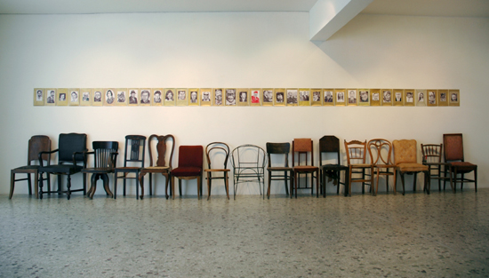 Ένας μικρός βασιλοκτόνος, 2006. Εγκατάσταση από πορτραίτα και καρέκλες, μεταβλητές διαστάσεις. |