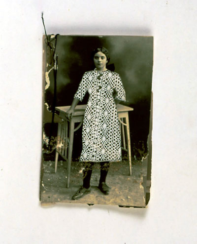 Χωρίς τίτλο, 1995. φωτογραφία, κλωστή, δαντέλα. 13x7 εκ.