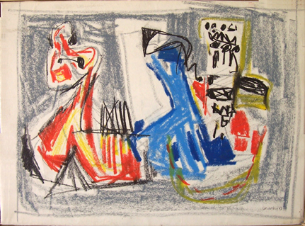 Χωρίς τίτλο, 1957. από τη σειρά Πουλιά και Λουλούδια. μικτή τεχνική σε χαρτί επικολημμένο σε καμβά. 44,5x57 εκ.