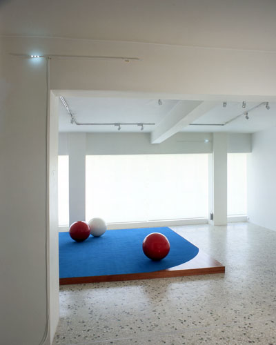 Jetzt=Jetzt (Now is Now), 2004. ξύλο, τάπητας, μπάλες από πολυεστέρα, φως. 400x400 εκ.