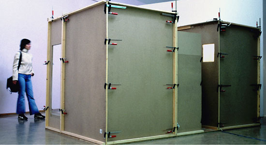 Bachelor Pad, 2003. αρχιτεκτονική εγκατάσταση. 4 ηλεκτρικοί λαμπτήρες, ηλεκτρονικός εξοπλισμός, λογισμικό. 360x180x180 εκ.